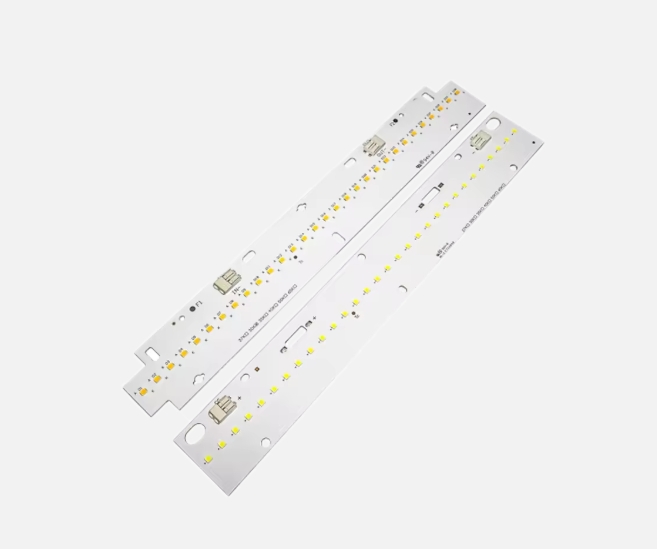 Módulos para exteriores (Libro 18/20): Los módulos de iluminación para farolas y túneles suelen ser de 121 × 49 mm, 223 × 49 mm, etc., con un espesor uniforme de 1,6 mm. También se imponen requisitos específicos al área de contacto de disipación de calor de la superficie de montaje y al espacio entre los orificios de los tornillos para garantizar la compatibilidad con la estructura de disipación de calor de los accesorios de iluminación para exteriores.